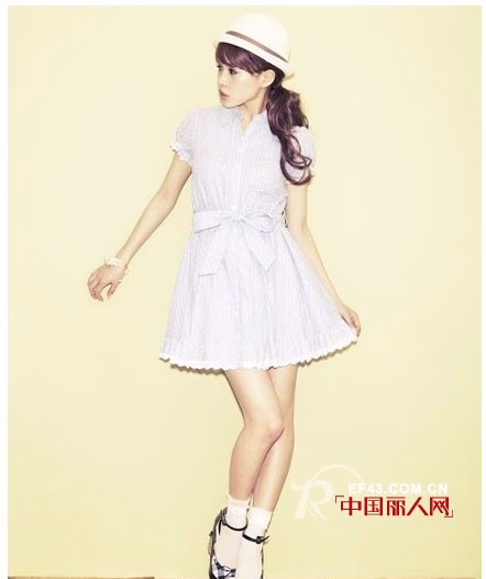 衬衫式的连衣裙好感度倍升,淡淡的竖条纹有显瘦的作用。