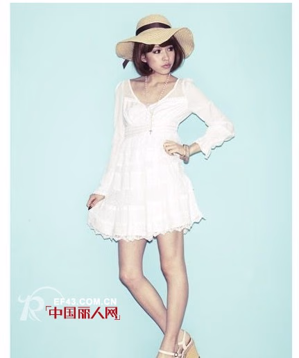 纯白色的连衣裙俨然一个复古美人的LOOK!大大的宽檐草帽,气场十足。
