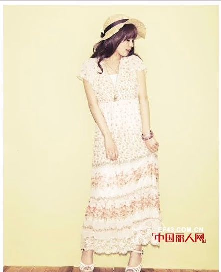 定番的连身长裙度假的必备款。碎花+雪纺,怎一个“仙”字可以形容!