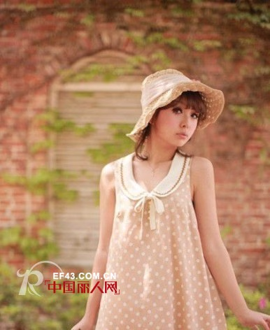 很轻松的裙子,小圆点,小圆领,小蝴蝶结,三颗小扣子,恰到好处的小A字,让人感觉很亲切很轻和的复古女生造型,这样的衣服穿起来最没负担最舒服了。