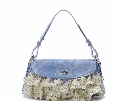 小编热荐理由:很适合甜美约会的一款牛仔帆布包,加上高贵典雅的蕾丝裙边,散发出一种让人无法抗拒的美,小巧时尚,搭配美裙一定能秒杀众人。