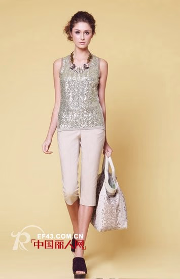 利落的卡其色系短裤,合体的裁剪,柔和的浅色在夏天实穿而百搭,搭配BlingBling的背心的或T恤,立即提升了时尚感。