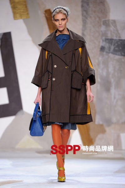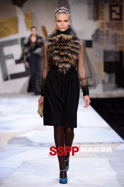 九分袖茧形大衣、高腰短外套搭配直筒裤或及膝中裙,低调的廓型与低调的色彩,让这一季的芬迪(Fendi)女郎们显得更加成熟大气。衬衫与连身裙的前襟点缀上荷叶边衣领,优美的褶皱带出女性的婉约典雅。黑色皮革也被处理得轻薄柔软,裁剪出丰富的层次与细腻的褶皱。荧光绿、湖水蓝、茄子紫、冷玫红等2011春夏流行色都纷纷登场。