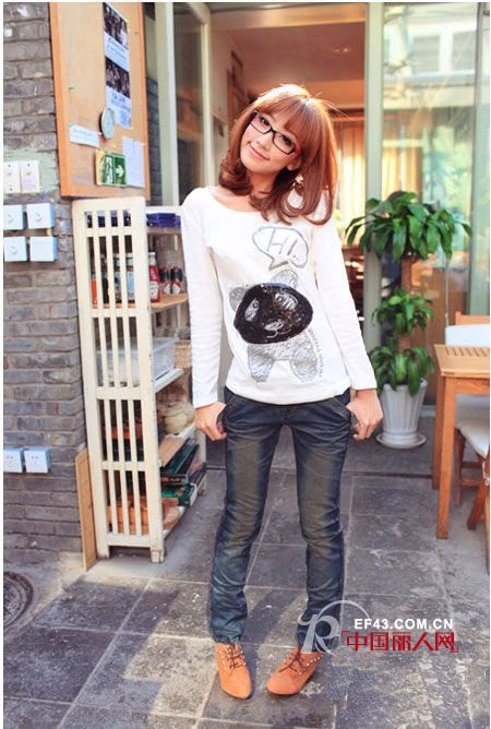 憨憨的熊猫令许多可爱MM欲罢不能,各种想象力丰富的熊猫形象设计中这样相反色调的创意同样能够突出,色彩令牛仔裤的搭配顺理成章。