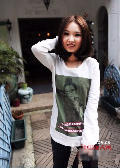 这款有着水洗感觉的海报风格图案,出现在稍显大胆的露肩设计白色T恤上,就透露出几分随意的奔放这样的味道。露腿的热裤或短裙的搭配度非常高哦。