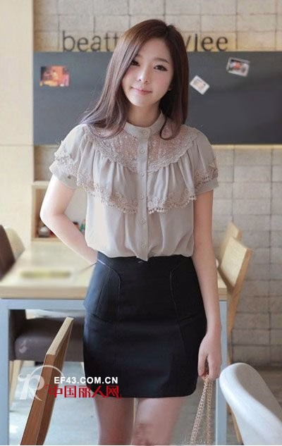 浪漫的蕾丝钩花,层层拼接在雪纺衫上。肩部的披肩款式,看起来就比普通的雪纺衫养眼不少!