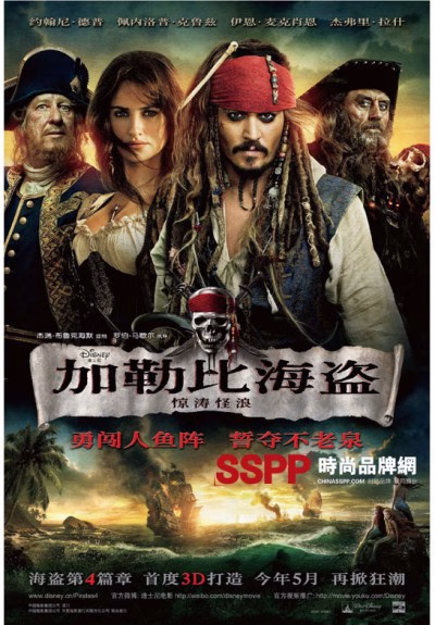 《加勒比海盗:惊涛怪浪》是《加勒比海盗》系列电影的第四部。影片由罗伯·马歇尔执导,约翰尼·德普将继续续扮演杰克船长,故事以他寻找青春泉水为主线。佩内洛普·克鲁兹饰演他的老情人,但让杰克船长不确定的是,她究竟是因爱情而来、还只是想利用他来找到传说中的不老泉。2011年5月18日,该影片在北京新东安影院举行媒体看片会。2011年5月20日零点起,《加勒比海盗:惊涛怪浪》在中国公映,“美人鱼”成为影片最大亮点。