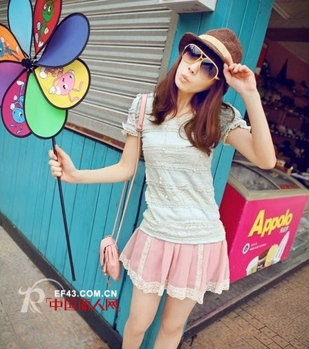 整体纷纷的色调甜蜜又温馨,缔造无敌亲和力,精致蕾丝边修 饰的潮T优美大方,搭配一条粉粉嫩的雪纺短裤,轻盈唯美,加上蕾丝的装饰,更加诱人!