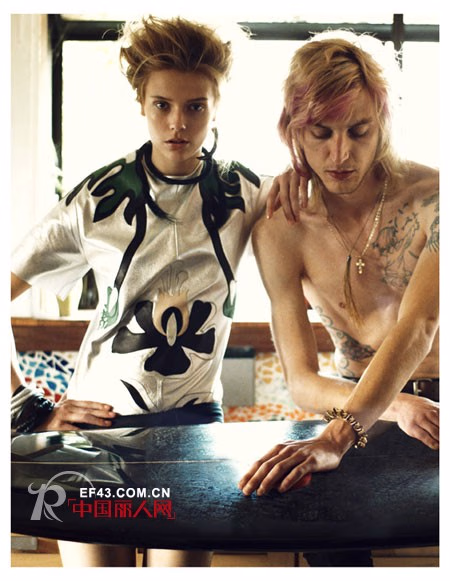 在拍摄过程中,Greg Kadel让Martha Streck随意使用周边的物品充当道具,和男模的互动显得十分自然。在美美妆容的衬托下,她凌乱的头发顿时变成了一种时尚,恰到好处!