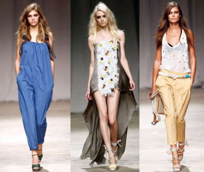 2011春夏lceberg用更加不拘一格的方式演绎休闲风格,飘扬的丝绸长裙。半身裙松松地围在腰际,丝绸面料制成不规则剪裁的连身裙或者是宽松的衬衫,演绎出洒脱与活力。