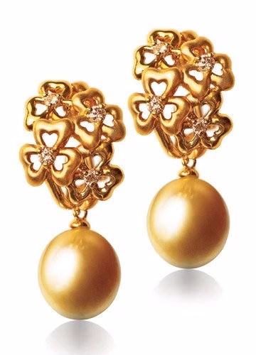 欧亿珠宝 18K 黄金镶金色南洋珍珠耳钉¥35,255