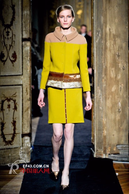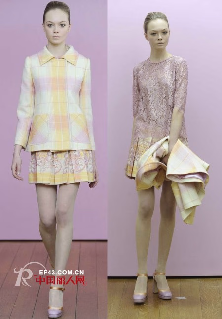 2011秋冬60年代套装裙回归纽约时装周上,Philosophy di Alberta Ferretti 2011秋冬秀充满浓郁的60年代怀旧气息。A型裙、洛可可风格的色彩、精致的细节制造出别致的上流少女LOOK。女性|mgsrchttpsom纽约时装soplbtt洛可可