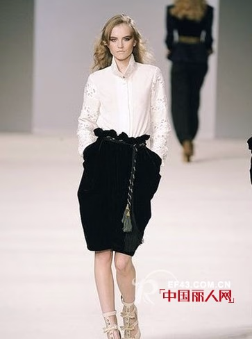 Chloé2009秋冬系列呈现的是柔软的1980年代早期风格系列,请注意模特脚上的蝴蝶结高跟鞋,在这以后,成为品牌的一大标志!
