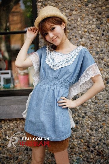 牛仔花边上衣,牛仔和蕾丝的搭配并不少见,但是让两者出现在同一件衣服上小编还是第一次看到,蝙蝠袖的设计将手臂上的肉肉尽数遮去,修身且甜美带的美衣你怎能错过?