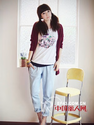 在假日时,T恤 与仔裤是大家最常选择的搭配。O型腿与X型腿的MM们同样要注意,最好选择宽松式的牛仔九分裤,将裤腿随意挽起,更能显腿直。