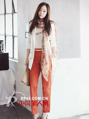 橙色的九分裤颜色亮丽,腿短的MM如果想很好的驾驭这种吸引人眼球的裤子,最好选择高腰的款式,将T恤 塞进腰中,搭配一条细细的皮带和一双高跟凉鞋 ,打造一双回头率极高的双腿。