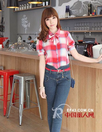衬衫的格子颜色很舒服,蝴蝶结的小领结也很有爱,袖子是有一点点泡泡袖的感觉的。所以才有显瘦的效果哦,面料也很凉爽舒服!很不错的小衬衫。