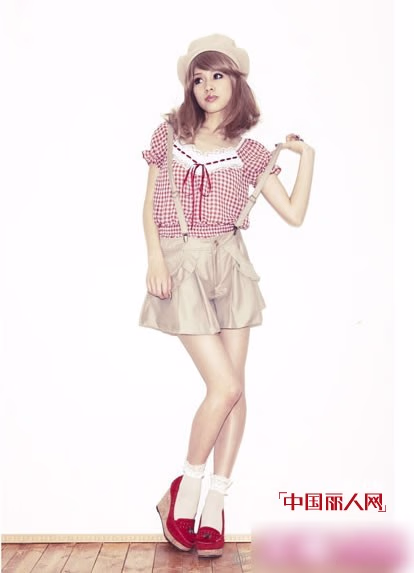 红色×裸色,清新的田园风搭配。红色显得元气满满,背带裤轻松可爱,选择裸色不会显得幼稚,很有质感!