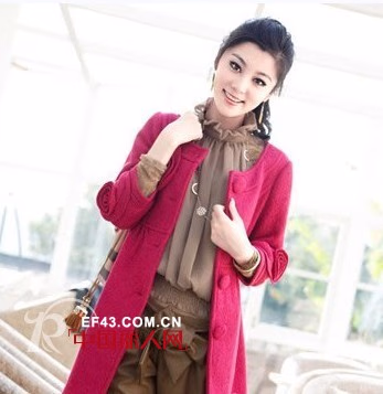 九分袖毛呢外套,时尚的花朵装饰,很显漂亮哦~
