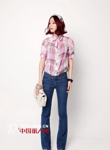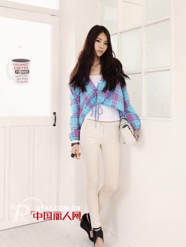 无论是格纹的颜色还是公主袖的设计,都不失可爱甜美,简单搭配在牛仔裤的里面,就很能显高挑身材。