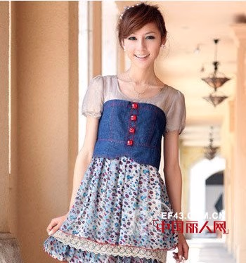 韩版淑女甜美修身显瘦连衣裙,肩膀与袖子部分采用半透明的雪纺,透出神秘的色彩,完美的拼接了马甲式牛仔布,为裙子增添了一份精致!