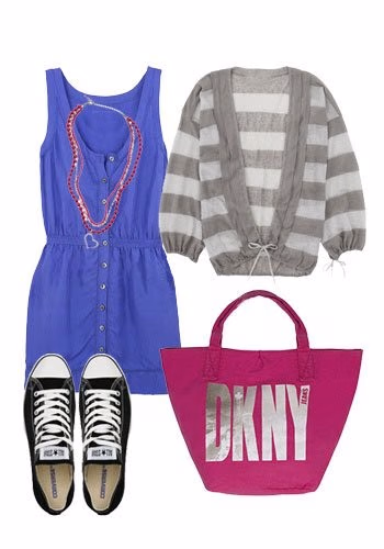春天阳光变得明媚天空变得湛蓝,一份粉紫情缘圆你浪漫梦想。休假的日子换上无袖连身裙,纯棉面料贴身舒适。披上灰白开衫颜色柔亲近,挎上芭比粉红的包包提亮整身色彩