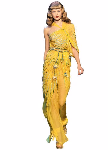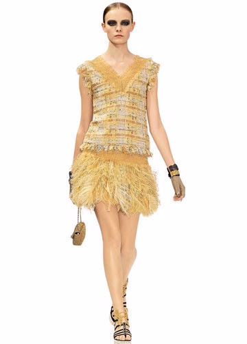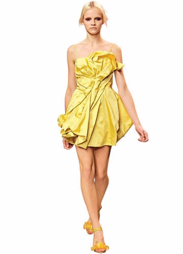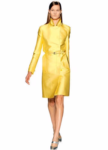 黄色是光的颜色,有着明朗愉快的特质。黄色既可以如阳光照射般的明媚、乐观,又能柔和的令人甜蜜。这一季,黄色不仅作为单独的亮色活跃在大师们的设计中,也被另类的与蓝色、绿色、粉色或紫色等搭配在了一起。除此之外,面料的创新变化更使黄色显得格外出众,Alexander Wang通过鹅黄色的针织面料淡化了钢筋水泥的都市感;Chanel 的黄色拼接格纹面料,以及黄色羽毛裙摆为法式优雅增添了年轻感;Loewe 更是用皮革来演绎黄色幼细丰富的质感。