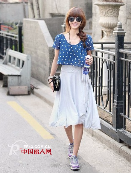 非常精致的短打造型的T恤,采用了可爱感觉的波点图案,瞬间带来甜美的俏皮气息,松垮的版型,非有约束感,非常轻松的休闲效果,搭配宽大裙摆的连衣裙,塑造出梦幻般的淑女造型。