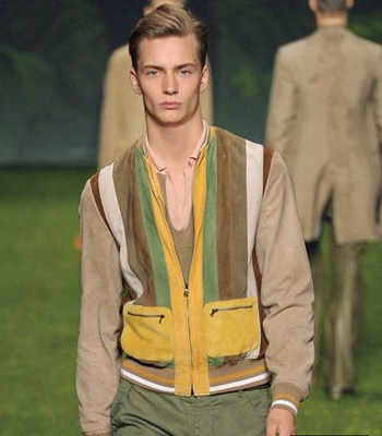 Etro 本季男装以绿色为基准色,无论是男士衬衣还是休闲西装,都向我们宣告了本季男装关键点:透视、细致纹路、合身剪裁以及绿色调。