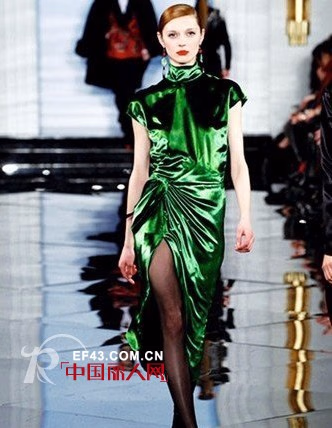Ralph Lauren说自己爱Art Deco和东方情调(Chinoiserie)主导下的1930年代,以此为灵感的2011秋冬秀场系列果然也赢得了满堂彩,其中穿凫绿色丝缎开衩裙,胸腰封得密不透风只露出一条纤纤长腿的Olga Sherer更让人难以忘怀。
