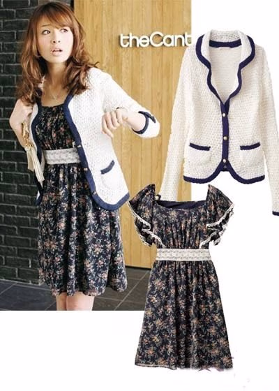 密集的深色碎花连衣裙,吸引视觉能够显得身材纤长。超宽的蕾丝高腰带使身材更匀称。再加上大荷叶边的衣袖,柔美而女人味十足。这么一款单品夏季单穿就足够妩媚,不过再春季再搭配上一款设计别致的镶边浅色开衫,就能 完美 呈现OL的优雅气质,轻松去通勤。