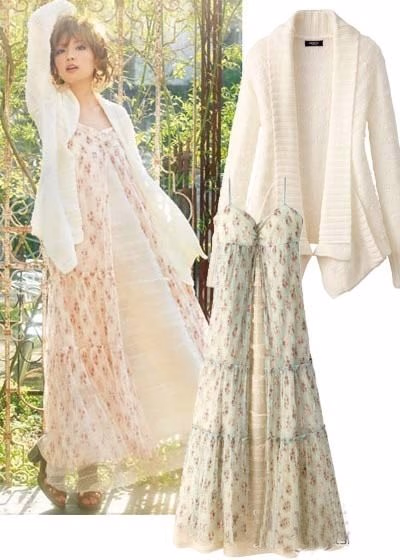 超长的波西米亚风的碎花吊带长裙,今春也会继续流行。这款长裙设计上的层次感让长裙看起来更浪漫飘逸。高个的美眉穿着更显身材秀场,矮个美眉也可以穿上一款厚底鞋借此拔高身型。当然了,春季穿着吊带裙一定会感到寒意,所以小编推荐搭配一款浅色的针织开衫,如果有不规则的下摆则更佳。