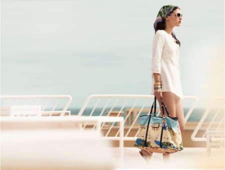 LV (Louis Vuitton) 2011春夏Ailleurs度假系列女装&配饰发布,碧海金沙、椰林树影……悠长假期里的明媚热带风情!翻涌的碧蓝海浪、阳光笼罩的金色沙滩、摇曳的青绿椰林……当春天终于来到身边,夏天也近在咫尺,这些画面总让人充满向往。LV (Louis Vuitton) 2011春夏的Ailleurs度假系列女装&配饰,将英国艺术家Pippa Cunningham的热带海滩风景画印上连身裙、泳装、包包、丝巾等服饰,讲述着悠长假期里的欢乐与惬意。