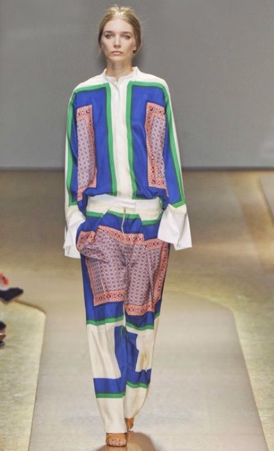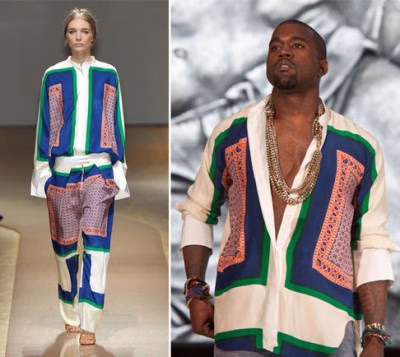 Kanye West曾经在他的Twitter上崇拜Celine表示他的妹就要穿Phoebe Philo,我们倒是还没看他常换的哪个妹穿上Phoebe Philo,但他自己就先穿了2011春夏的Celine色块衬衫。这件衬衫我们曾在Celine春夏发表会现场看过,实品非常轻柔宽松,就算是体格壮硕的男人穿上也不失为个好点子,事实上本季若有男子想勇敢尝试Celine,似乎也不用担心服装尺寸,因为现场的一件长裤我们拉起就直接到头顶,让我们怀疑即是女装也只有名模姬赛儿(Gisele Bundchen)能穿来着。