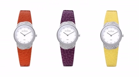 在SKAGEN新表系列中,有那么一个花瓣交织的表盘,既突现别致女人味,更意味着花开时节的生命力与美感。而表带压纹也是一大亮点,设计灵感来源于SKAGEN海滩礁石的排列,似乎让人听到小美人鱼的海洋之声。而多色表带更带来最为时尚、最为应景的春日童话气息,神秘的紫色、淡雅的蓝色、热情的红色、明媚的黄色还有优雅的白色,让每一位爱春色、爱生活的品位女人都能找到与自己个性风格最为匹配的腕表。