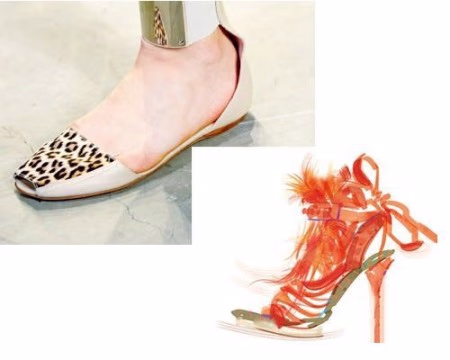 Prada本季的厚底鞋绝对是最当红鞋款,撞色条纹鞋底与金属色鞋面产生了有趣的化学反应,让人过目不忘。而与之平起平坐的,还有Chloé的芭蕾舞鞋,秀场上身着薄纱裙装的模特们脚蹬平底鞋,宛若优雅的芭蕾女伶。如果想在派对上吸引目光的话就选Prada,如果想又舒服又有型地去上班的话,就选Chloé吧。