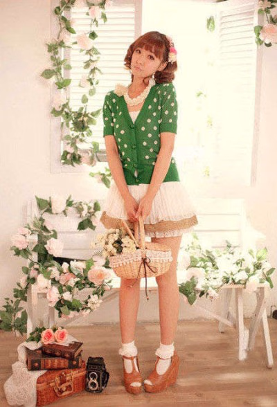 这款波点的小开衫活泼气质比较浓郁,一件简单的裙子或者短裤,一旦搭配一旦搭配上这个绿色,正个人立刻变的生动起来呢。