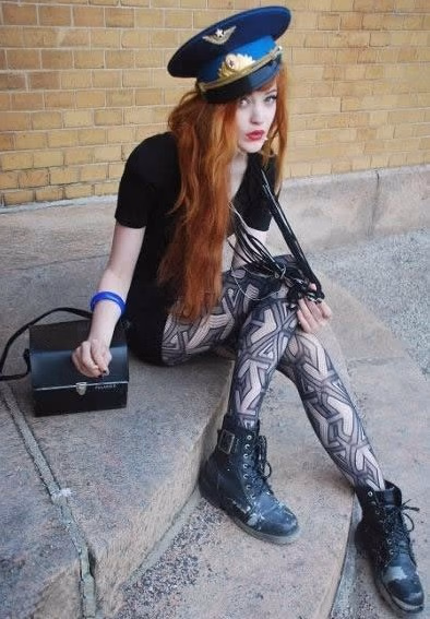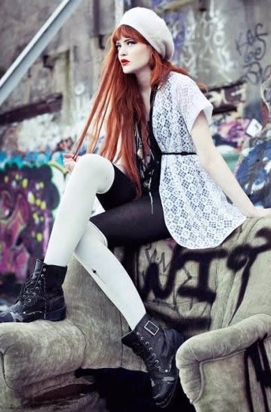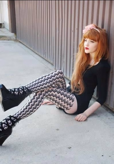 绚丽印花风格的丝袜,整体搭配应该选择比较单一的颜色,以免变成“调色盘”。