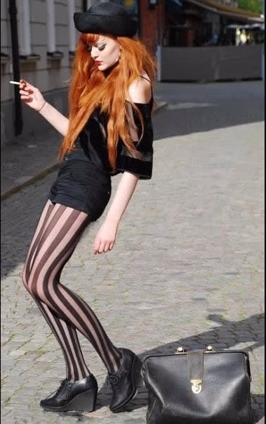 长条纹+透肉式,这款丝袜的两个元素都是2011春季最in的。