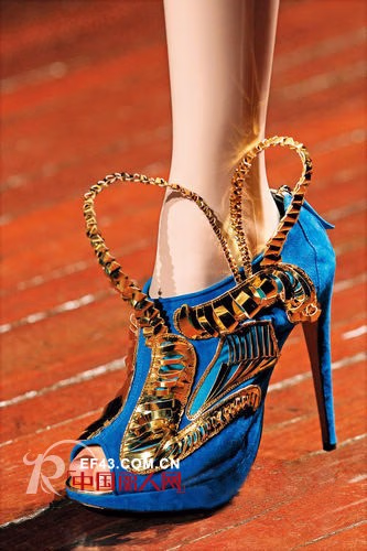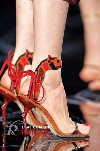 当然,那些与It girl、It bag一样“It”的鞋子也是每季T台上必不可少的亮点,鞋子再也不是被我们踩在脚下的大配角,而是丫头翻身,成为可以决定整体形象的“老板娘”!比如本季以Louis Vuitton、Dior为代表的装饰派,便把鞋子当成艺术品一般用心打造——串珠流苏、斑马及长颈鹿脚的跟、羽毛拼贴丝带,让人大开眼界。而Fendi与Kenzo掌领的拼贴派则以方正廓形为主,把不同颜色、材质按照有趣的比例拼合起来,让人想起了儿时的积木与七巧板,艺术感与童趣共冶一炉。
