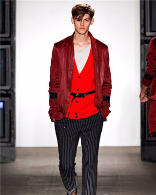 Versace的这件红色上衣其实挺好穿的,不会让你看起来特别的突兀,特别是压黑的处理,显出男人的大气与沉稳。