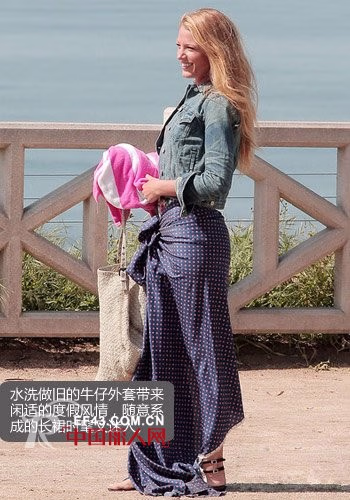 明媚的度假风情轻松又宜人,看似不搭的牛仔外套、圆点图案长裙分外迷人,搭配上露趾平跟鞋、编织款手提袋更显俏皮气息。