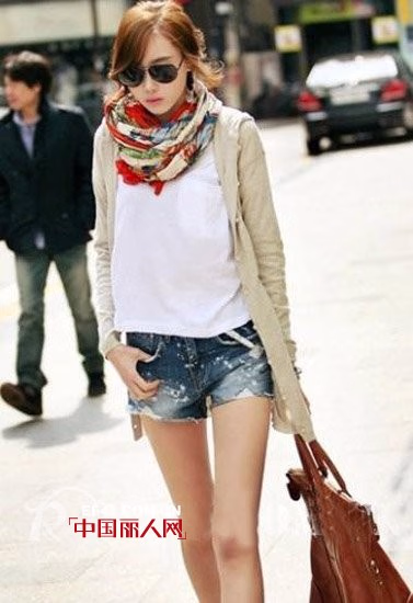 白色长款T恤让你不吸热,怕冷的时候就可以围上围巾,穿上帆布鞋一起到郊外gogo!