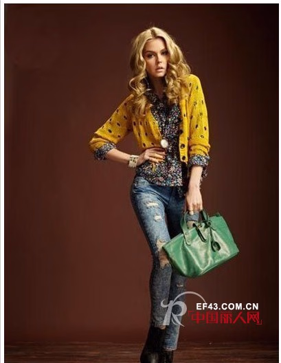 破洞针织衫搭配破洞牛仔裤,欧美街头范儿十足,花衬衫打底,将田园风也轻松地融入到欧美范儿里面。