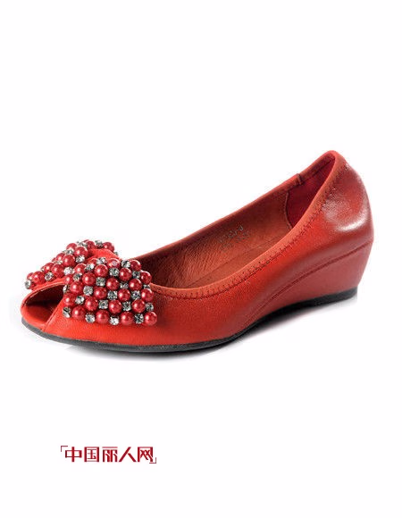 串珠蝴蝶结内增高圆头鱼嘴鞋,手工制作精致串珠蝴蝶结,增添优雅浪漫气息,圆头与鱼嘴设计,唯美得叫人砰然心动。