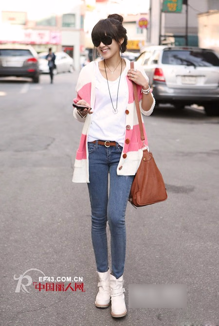 粉白色宽条纹拼接针织开衫,潮味十足的外形。散发淡淡优雅甜美气息。剪裁搭配t恤+仔裤,就变身最潮街头达人哦