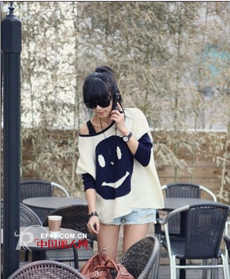长袖宽松t恤,胸前大大的笑脸带来超高回头率。超可爱印象。后背的个性拼接超有型。简单搭配牛仔热裤就成为抢镜焦点。