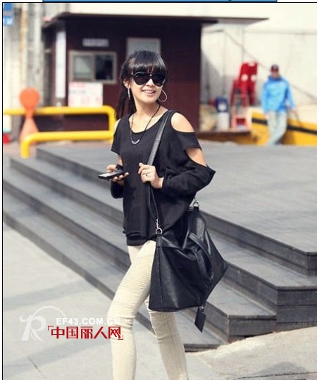 随性穿搭,松垮露肩卫衣。别致造型,穿搭出十足潮味时尚感觉。