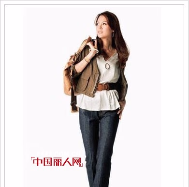 喇叭裤的款式并没有过时,这不仅能提升MM对自己时尚潮流敏感度以及自己着装的自信。而与普通TEE相比,白色A字型上衣显得更加女人一些,搭配卡其色夹克显得休闲而率性。腰带的画龙点睛,不仅对提高腰线以及气质的体现都有佷好的帮助。