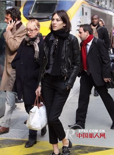 波尔卡小圆点衬衫适度缓解了黑色皮衣的嚣张感;而布洛格鞋上的金属铆针更带来了春天的活力。
